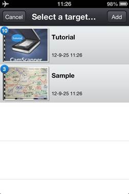 document cible ou tapez sur ajouter en haut à droite pour créer un nouveau